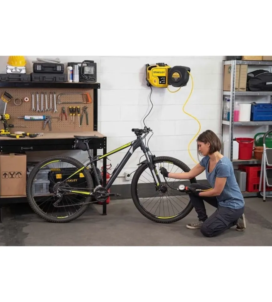 Inoltre, l’arrotolatore ruota fino a 180° per raggiungere facilmente qualsiasi punto, rendendo il compressore versatile e adatto a una vasta gamma di utensili pneumatici. Con una potenza di 1,5 HP (1,1 kW) e una pressione massima di 8 bar, questo compressore offre un flusso d’aria di 160 litri al minuto, rendendolo ideale per molteplici applicazioni.