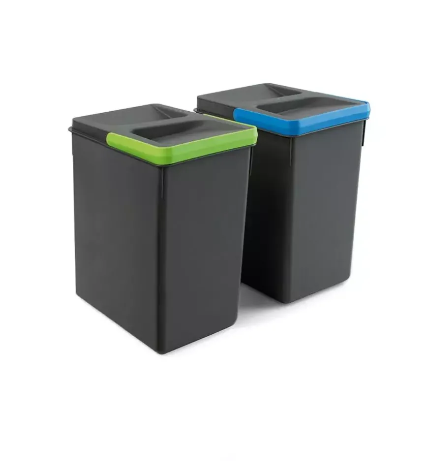 2 contenitori per la raccolta differenziata plastica grigio, 12lt