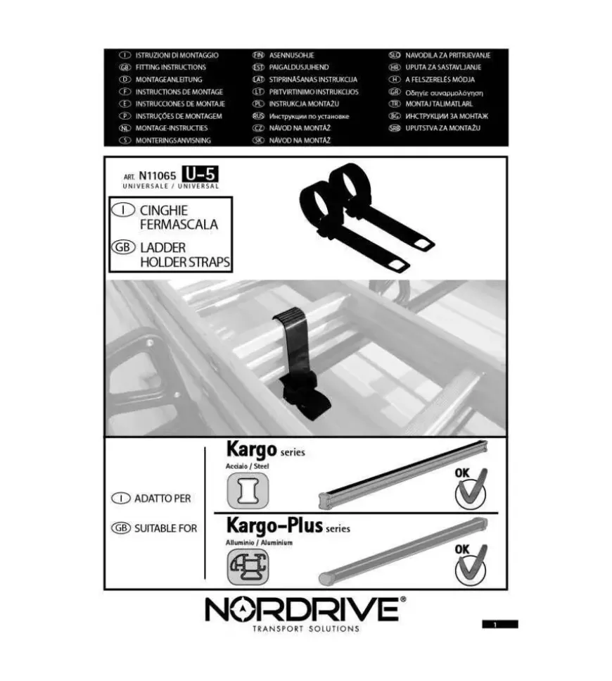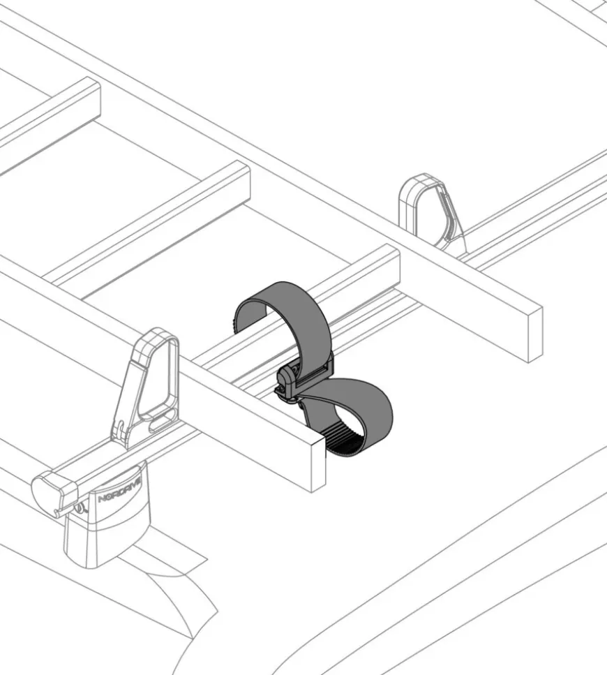 Pratico e rapido accessorio per il fissaggio della scala alle barre Kargo e Kargo-Plus.Le robuste cinghie afferrano i pioli trattenendo la scala alle barre.Nota: Da utilizzarsi solo in abbinamento ai ferma carichi.