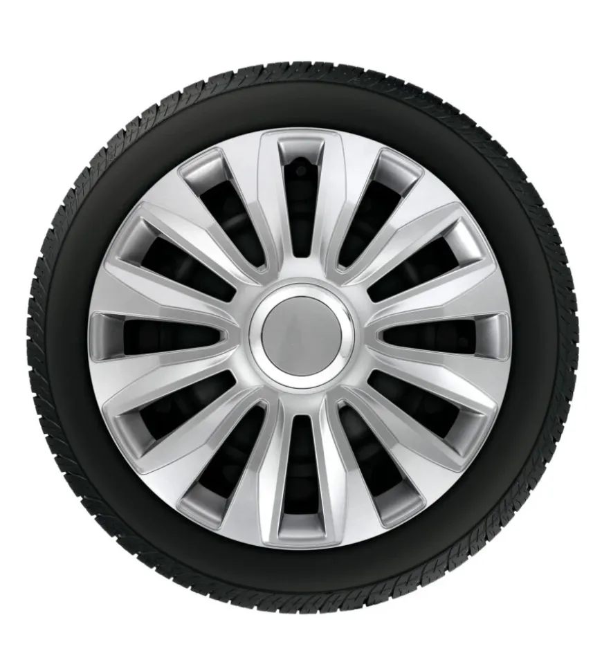 Set 4 copricerchi In ABS, verniciatura doppio strato.Universali per tutti i cerchi in acciaio.Ganci di fissaggio in resina per non graffiare il cerchio.Anello in acciaio temperato, garantisce massima e perfetta aderenza. Di facile montaggio