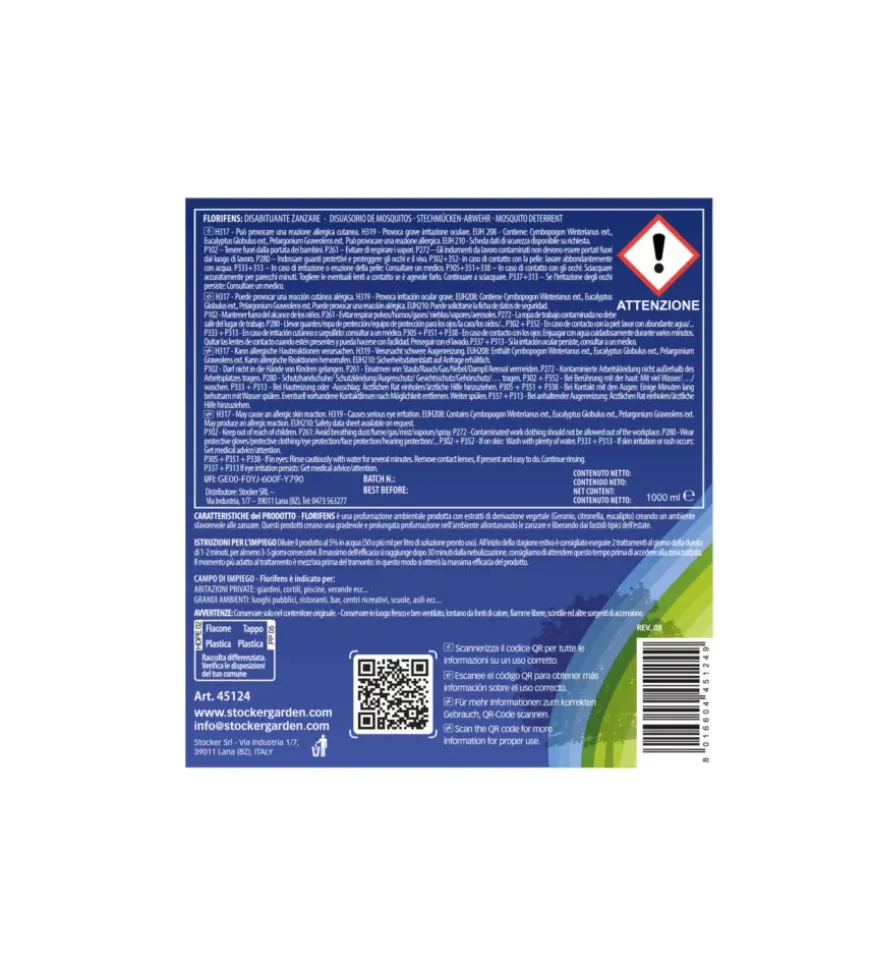 - Concentrato emulsionabile con estratti vegetali: geranio, citronella, eucalipto
