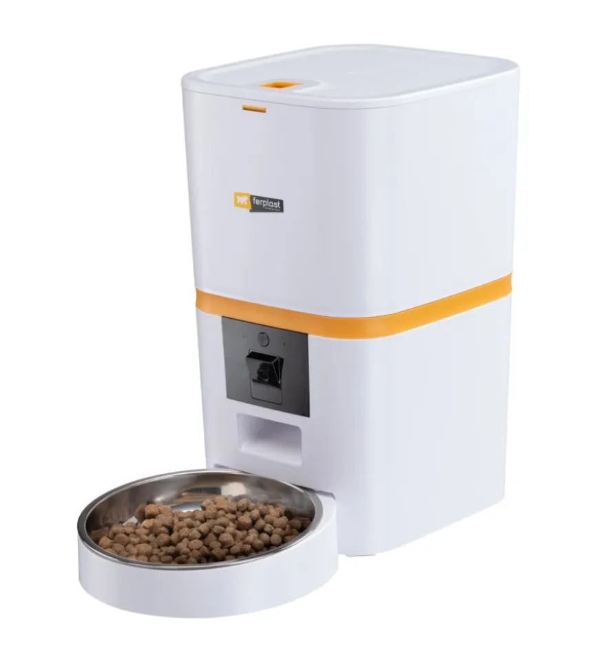 La doppia alimentazione tramite batterie o rete elettrica garantisce un funzionamento continuo, anche in caso di interruzioni di corrente, assicurando che i pasti vengano erogati regolarmente. Il distributore automatico “Risto Pet Smart” è dotato di sensori di sicurezza che rilevano eventuali ostruzioni nel canale di uscita delle crocchette e attivano un allarme in caso di malfunzionamenti, mentre un coperchio con chiusura di sicurezza e una guarnizione preservano la freschezza del cibo. Il contenitore ha una capacità di 6 litri ed è dotato di una ciotola in acciaio inox, facilmente lavabile e igienica. La coclea in morbida gomma e il sistema di agganci di sicurezza garantiscono una lunga durata e una pulizia semplice. La mangiatoia è compatibile con crocchette fino a 12 mm di diametro e non è adatta per cibo umido. L’alimentatore è incluso, mentre il dispositivo richiede 4 batterie alcaline di tipo AA, non incluse.