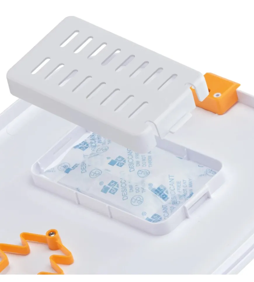 - Coperchio con chiusura di sicurezza e scomparto per essiccanti per mantenere la freschezza del cibo