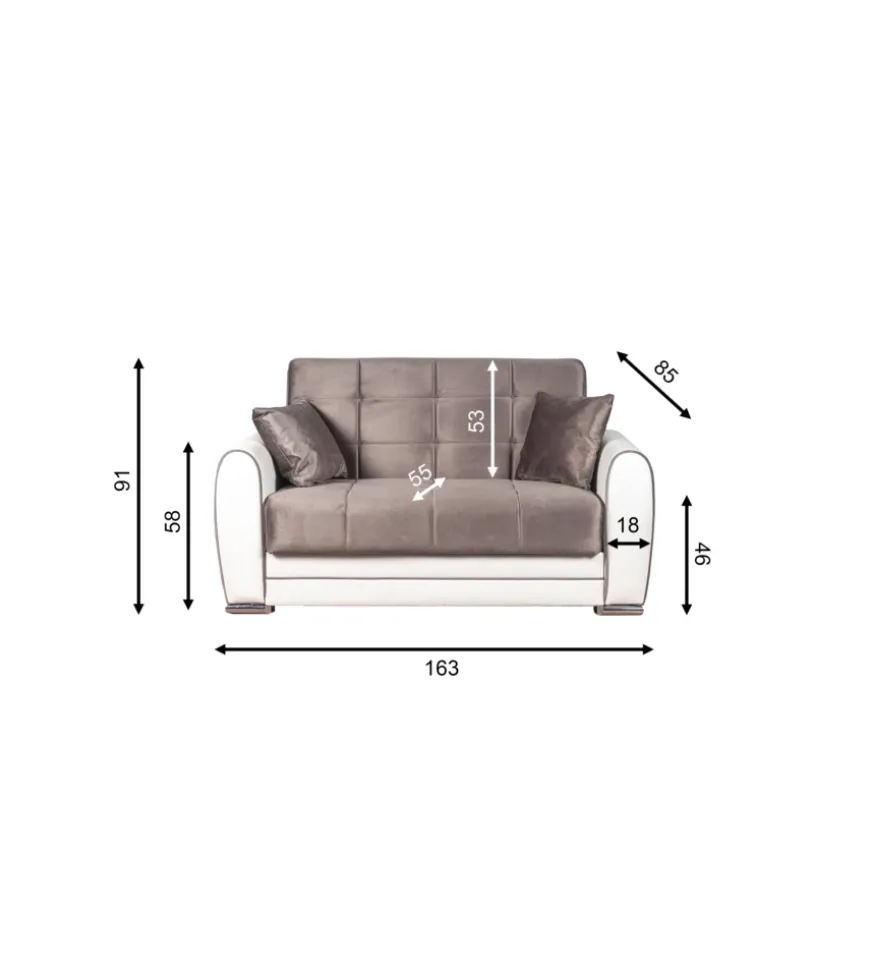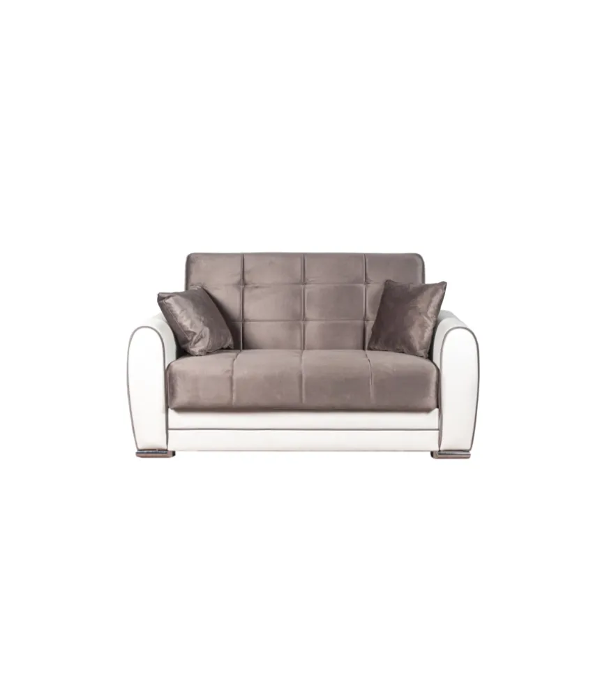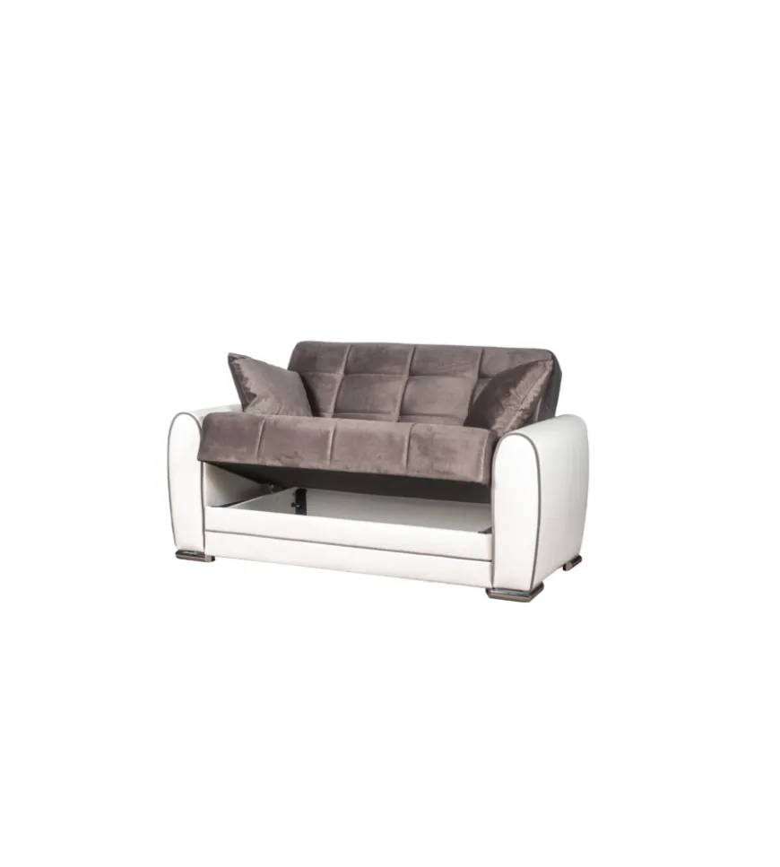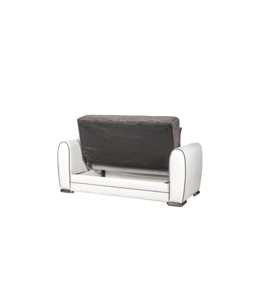 - Divano letto 2 posti con ecopelle bianca e tessuto grigio, 163x91x84 cm