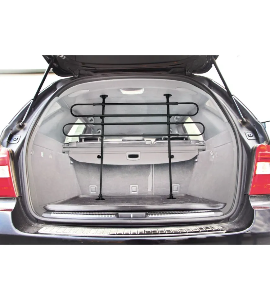 GRG-1, griglia divisoria telescopica a 2 elementi.Per trasporto di cani e merci. Di facile montaggio, senza utilizzo di utensili e senza praticare alcun foro. Solida e sicura senza alcuna parte contundente pericolosa per la sicurezza degli animali e dei passeggeri.
