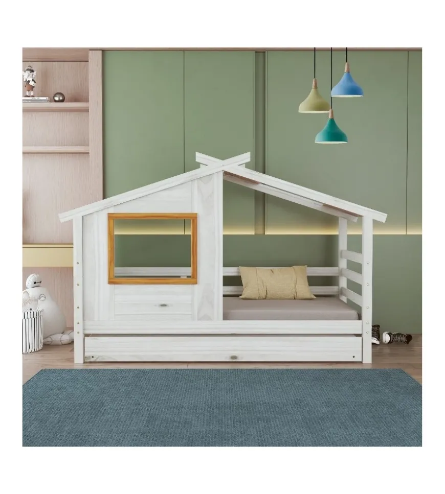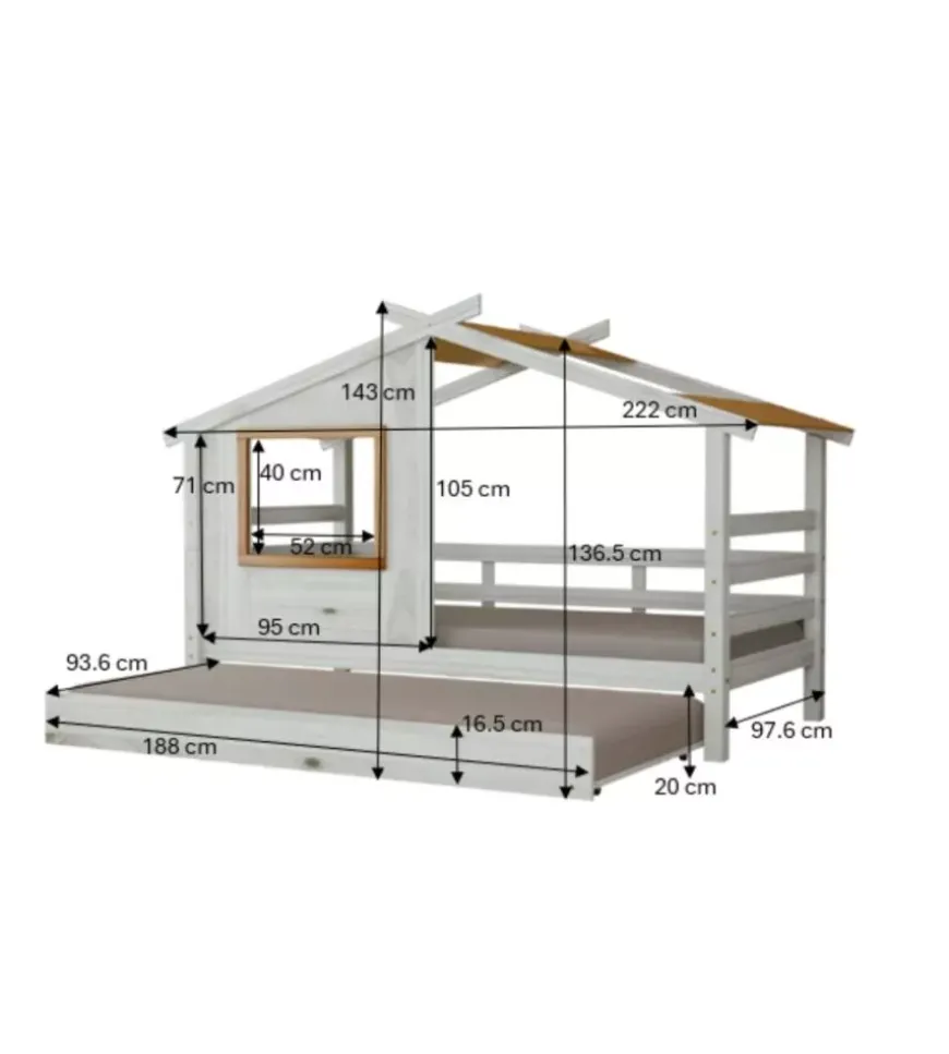 Il doppio letto singolo per ragazzi BellaHome “Nantes” a forma di casetta è la soluzione ideale per chi cerca praticità e stile in spazi ridotti. Dotato di un letto inferiore a scomparsa, ottimizza l’ambiente senza rinunciare al comfort. Il colore betulla sbiancato, arricchito da dettagli in legno naturale, dona un aspetto fresco e raffinato, perfetto per qualsiasi tipo di arredamento. Una scelta versatile e funzionale, perfetta per camere da letto moderne e accoglienti. Sono necessari materassi con dimensioni 90×190 cm e un’altezza massima di 16 cm, mentre la portata massima per ogni ripiano è di 110 kg. Il doppio letto singolo presenta solo la struttura, materassi non inclusi.