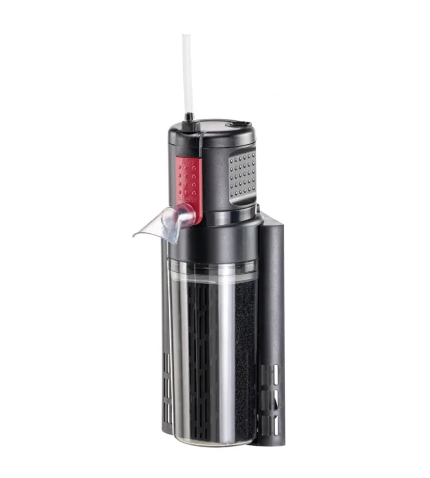 Filtro interno a 2 stadi completo di carbone attivo. Flusso d’acqua orientabile, supporto con ventose incluso. Molto versatile, consente di utilizzare materiali filtranti diversi secondo necessità.