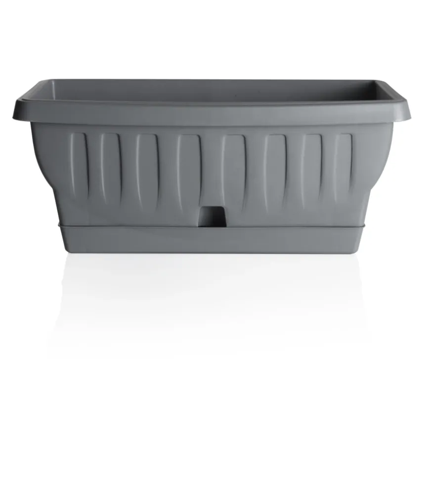 Fioriera con sottovaso a riserva d’acqua.E’ una linea coordinata e completa di fioriere, dalla forma attuale e dal design attraente. Realizzata con resine certificate e atossiche, presenta una riconoscibile accuratezza in ogni dettaglio estetico e funzionale, assicurando affidabilità , resistenza e durata: resistente agli sbalzi di temperature, agli urti e ai raggi solari.