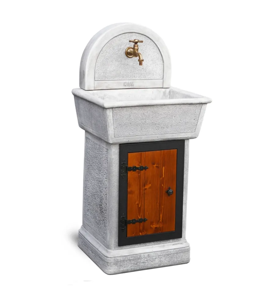 - In cemento e granulato di marmo colore grigio, con finitura anticato
