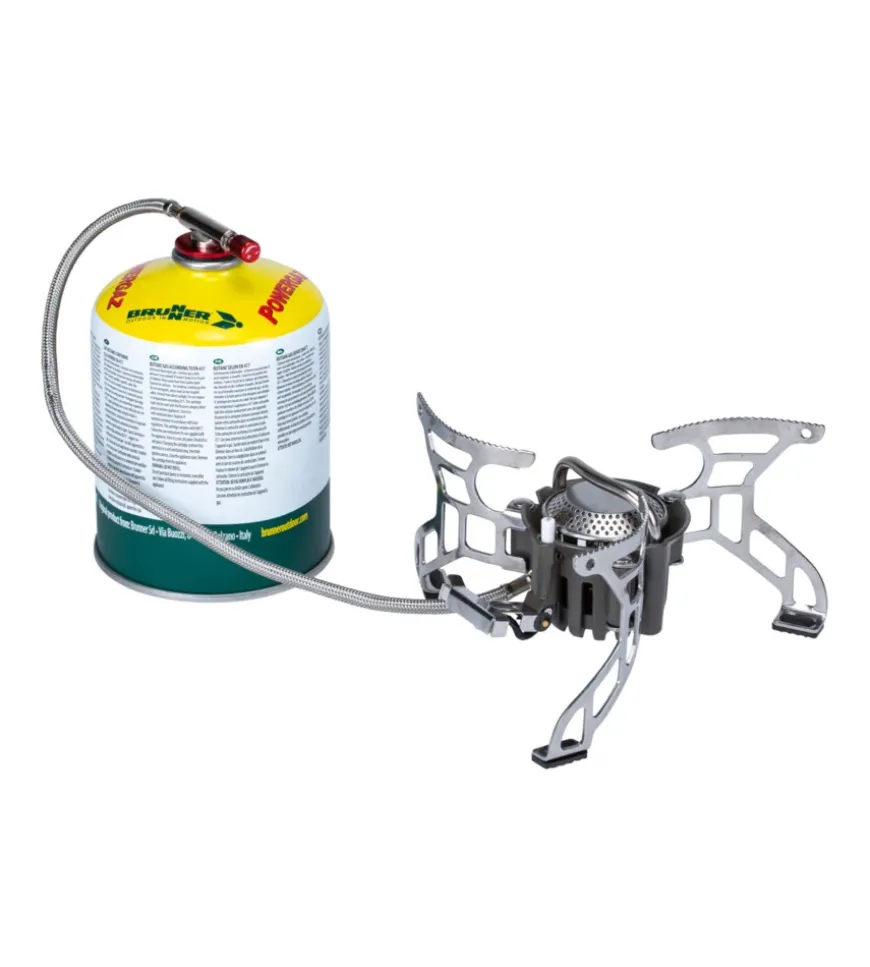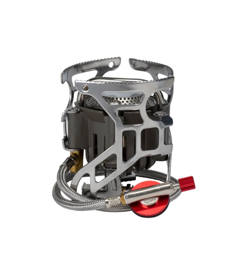 Fornello gas pieghevole ultraleggero in acciaio per camping ed Outdoor. Completo di accensione piezoelettrica e valvola di collegamento con manopola di regolazione della fiamma. Facile da riporre e trasportare nella sua pratica sacca custodia.