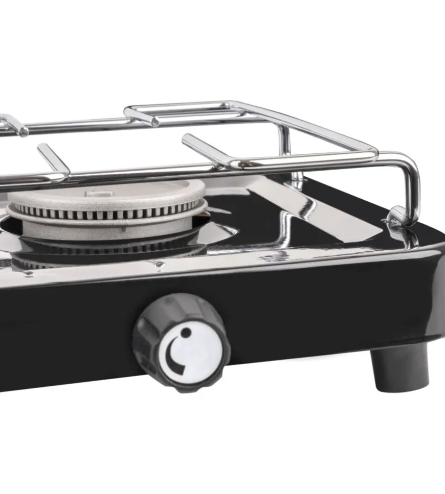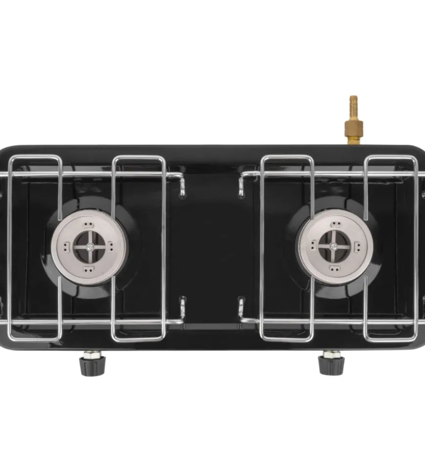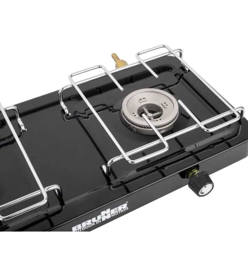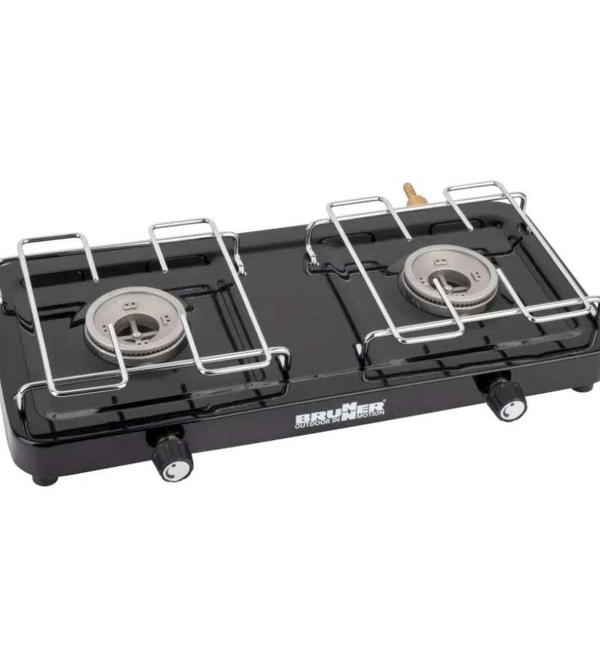 Fornello gas a 2 fuochi stabile e compatto. Facile da trasportare. I bruciatori sono regolabili separatamente. La struttura รจ in metallo verniciato a polvere con griglia di appoggio in nickel cromato resistente a deformazioni. Attenzione: Non usare in ambienti chiusi!