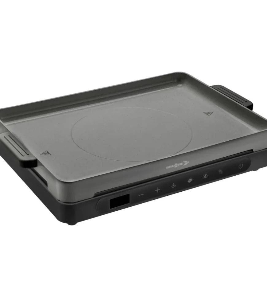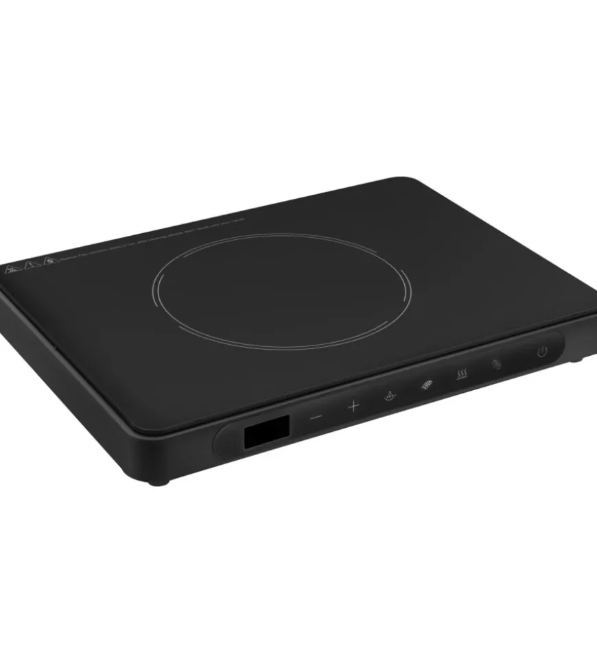 Fornello/Grill portatile elettrico dotato di monopiastra ad induzione. Costruzione solida e dal design moderno realizzata con corpo in PP termoresistente e superfice di cottura in vetroceramica ad alta resistenza. Ideale per l’utilizzo in ambito outdoor e campeggio, grazie a una zona di cottura con 9 livelli di potenza (da 300 a 2000W) selezionabili mediante comandi Touch control e display led. La fornitura comprende una piastra grill in alluminio predisposta per una termodiffusione omogenea, internamente rivestita in ceramica per delle cotture alla griglia davvero eccezionali.