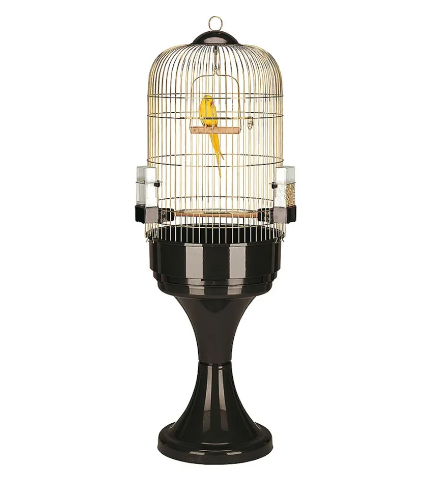 La particolare finitura anticata è stata realizzata mediante una doppia verniciatura effettuata con polveri speciali che aumenta altresì la protezione della gabbia dalla formazione di ruggine. La gabbia Max 6 Antique Brass è studiata per la massima sicurezza del vostro amico: per evitare fughe accidentali, la porte di accesso della gabbia, facile da aprire grazie allo scorrimento verticale, può essere bloccata grazie al lucchetto in dotazione. È completa di accessori specifici per pappagalli quali posatoio in legno, altalena in metallo e due capienti mangiatoie in plastica che potrete utilizzare indifferentemente per il mangime o per l’acqua. La gabbia viene fornita completa di supporto in plastica F 76 con utili ruote per gli spostamenti.
