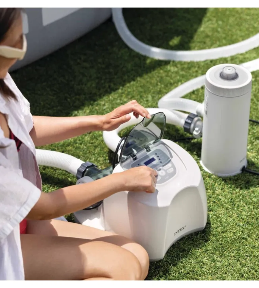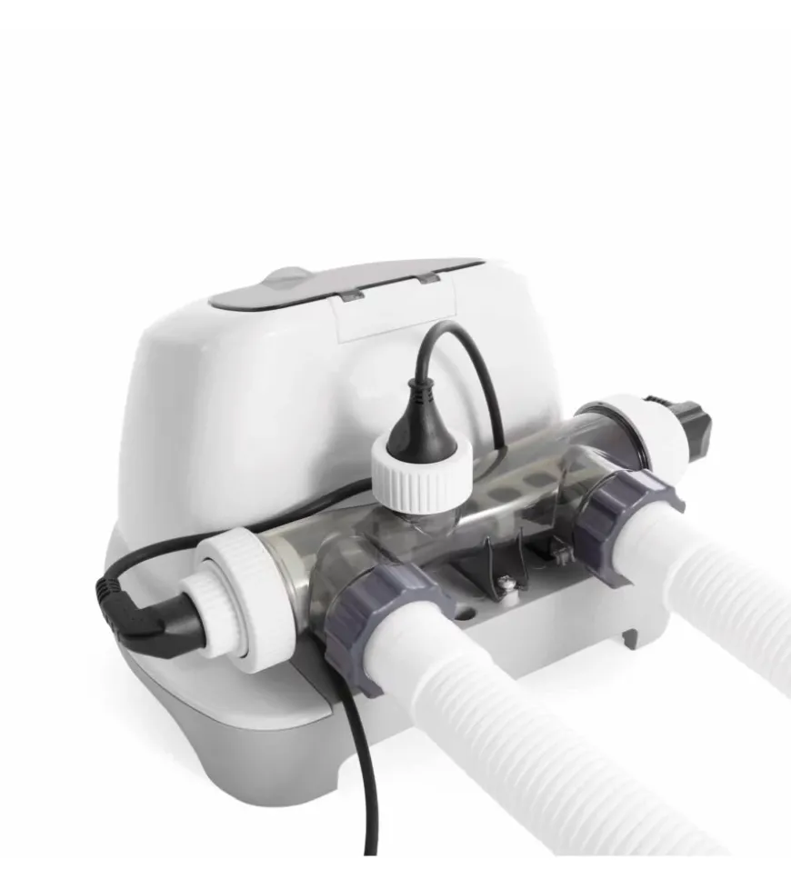 - Il generatore salino di cloro converte il sale disciolto in acqua in cloro, per evitarti l’utilizzo di costosi prodotti chimici