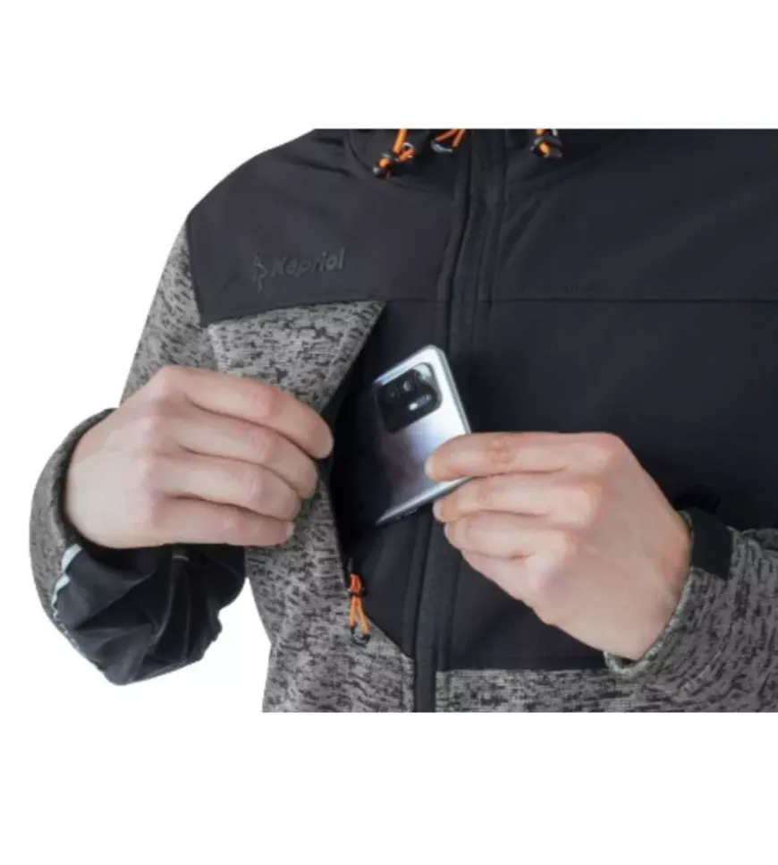 - Materiali: 100% poliestere, softshell con laminazione fleece, idrorepellenza e isolamento termico
