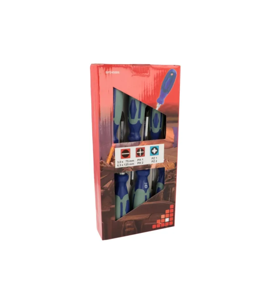 2x a taglio: 75 – 125 mm. 2x Phillips: PH 1 – PH 2 2x Pozidriv: PZ 1 – PZ 2