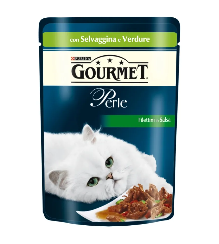 Gourmet perle – alimento umido per gatto, filettini in salsa con verdure e selvaggina.