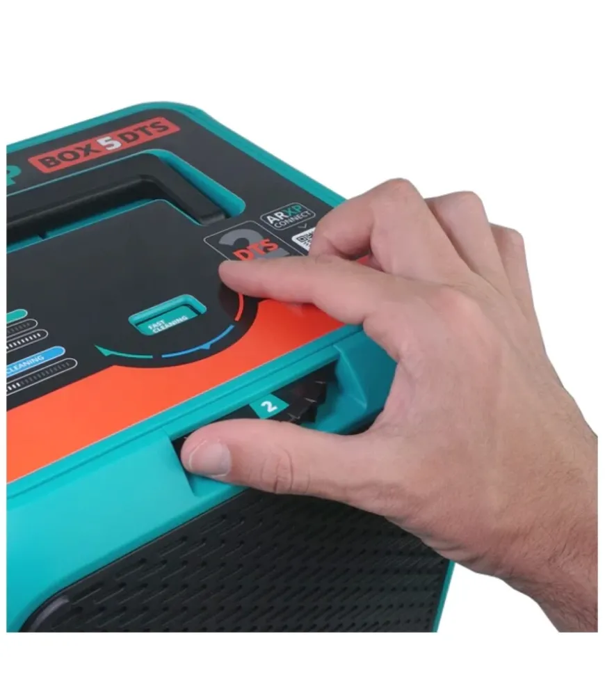 - FAST: con la modalità FAST si attivano entrambe le Power Units, con il doppio della portata d’acqua il lavaggio avviene con molta più efficacia e velocità. In questa modalità l’idropulitrice lavora a 160 Bar, 2,7 kW e 850 l/h