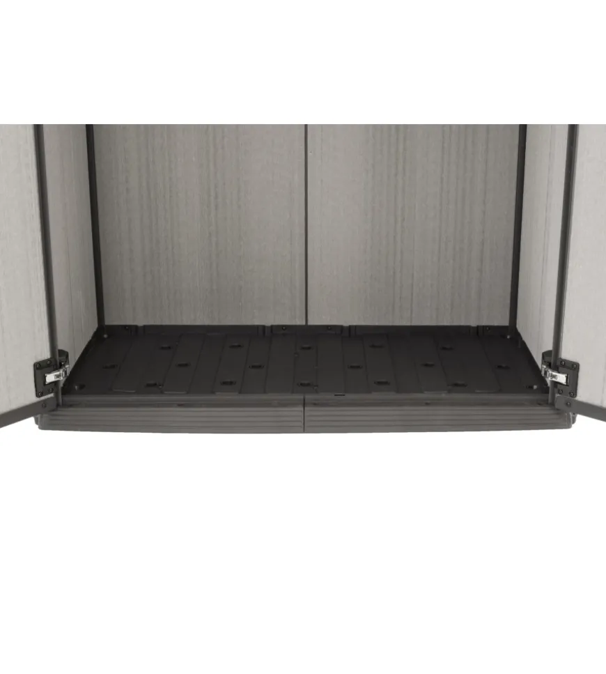 Pavimentazione rinforzata per maggiore stabilità, ampia apertura frontale con porte richiudibili.