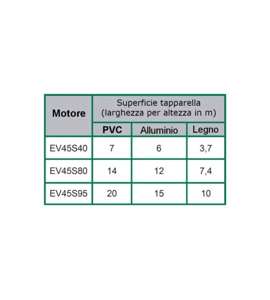 - Motore tubolare 230V, capacità di sollevamento 95 kg