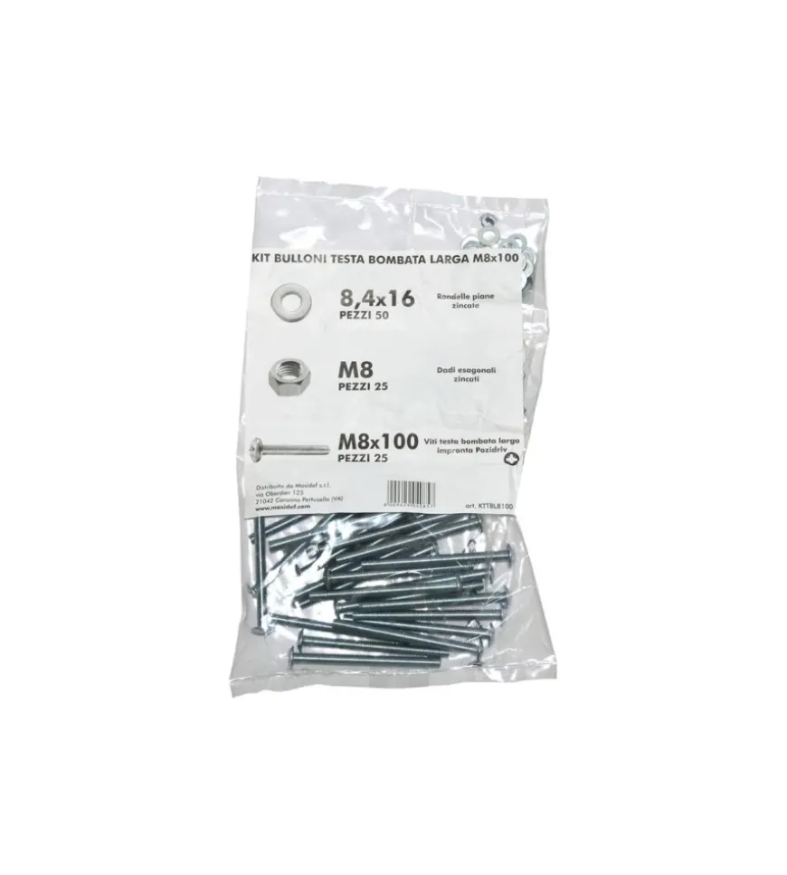 • 25 viti testa bombata larga Ø 8 x 100, zincate, impronta Pozidriv
