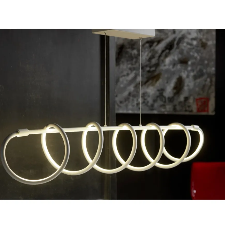 La lampada a sospensione LED “Spirale” รจ un elemento di design moderno ed elegante, ideale per aggiungere un tocco unico al soggiorno o sopra l’isola della cucina. La sua struttura si sviluppa in un’affascinante spirale orizzontale di 120 cm, garantendo un’illuminazione omogenea e diffusa grazie ai 72W di potenza del LED integrato. Con una temperatura di colore di 3000K, emette una luce calda e accogliente, perfetta per creare un’atmosfera sofisticata. La finitura bianca la rende perfetta per ambienti moderni o minimalisti.