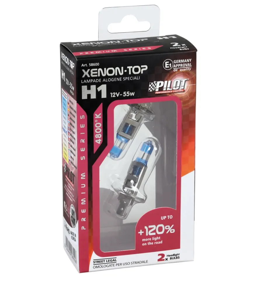 Lampada alogena 12v xenon top +120% luce – h1 – 55w – p14,5s – 2 pz – scatola 58600
