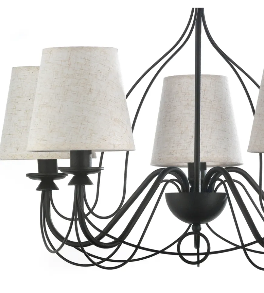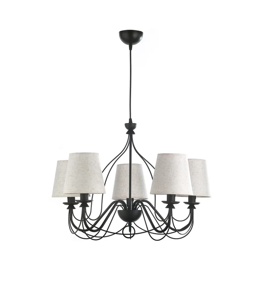 Lampadario a 5 luci “Loris” nero e sabbia, E14.