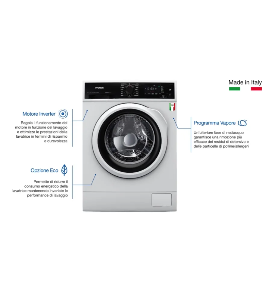 - Opzione Eco: permette di ridurre il consumo energetico della lavatrice mantenendo invariate le performance di lavaggio