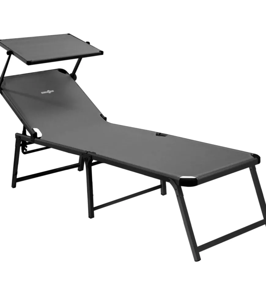 Lettino prendisole reclinabile con tettuccio brunner “marbella high” in alluminio e syntex plus grigio 198x64x48 cm