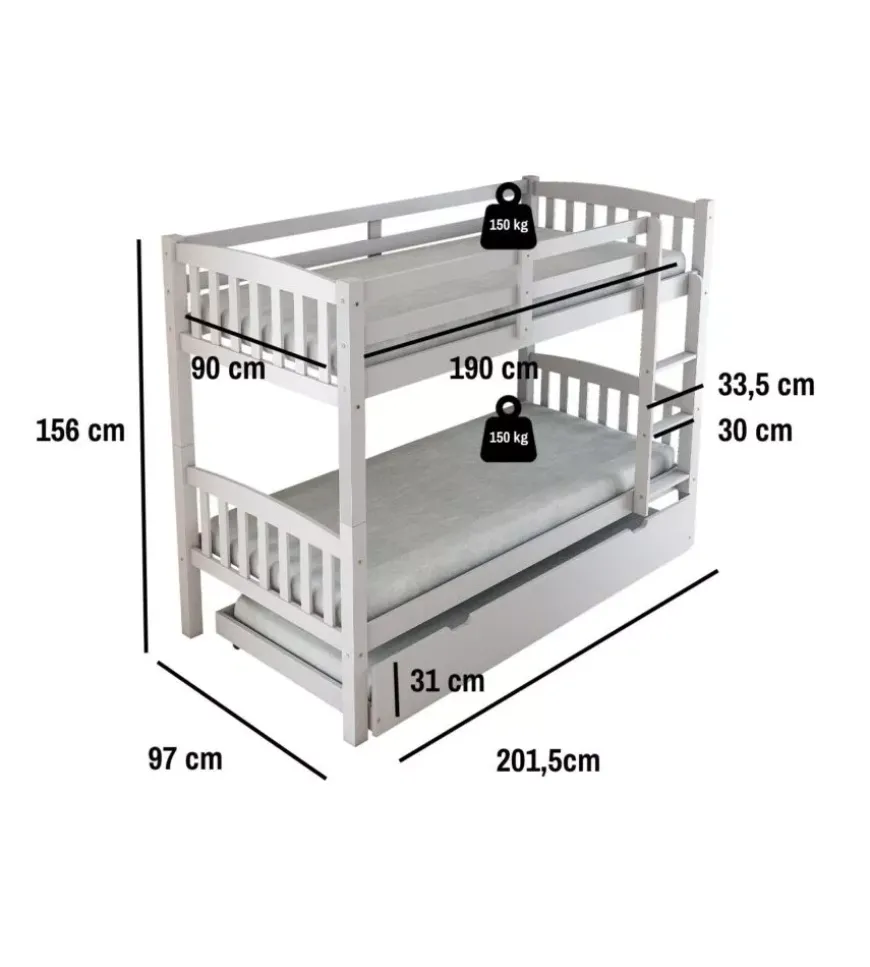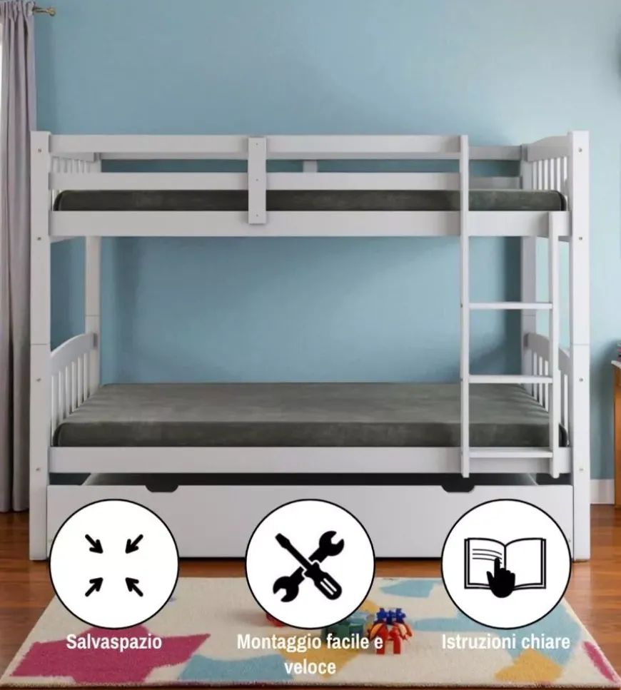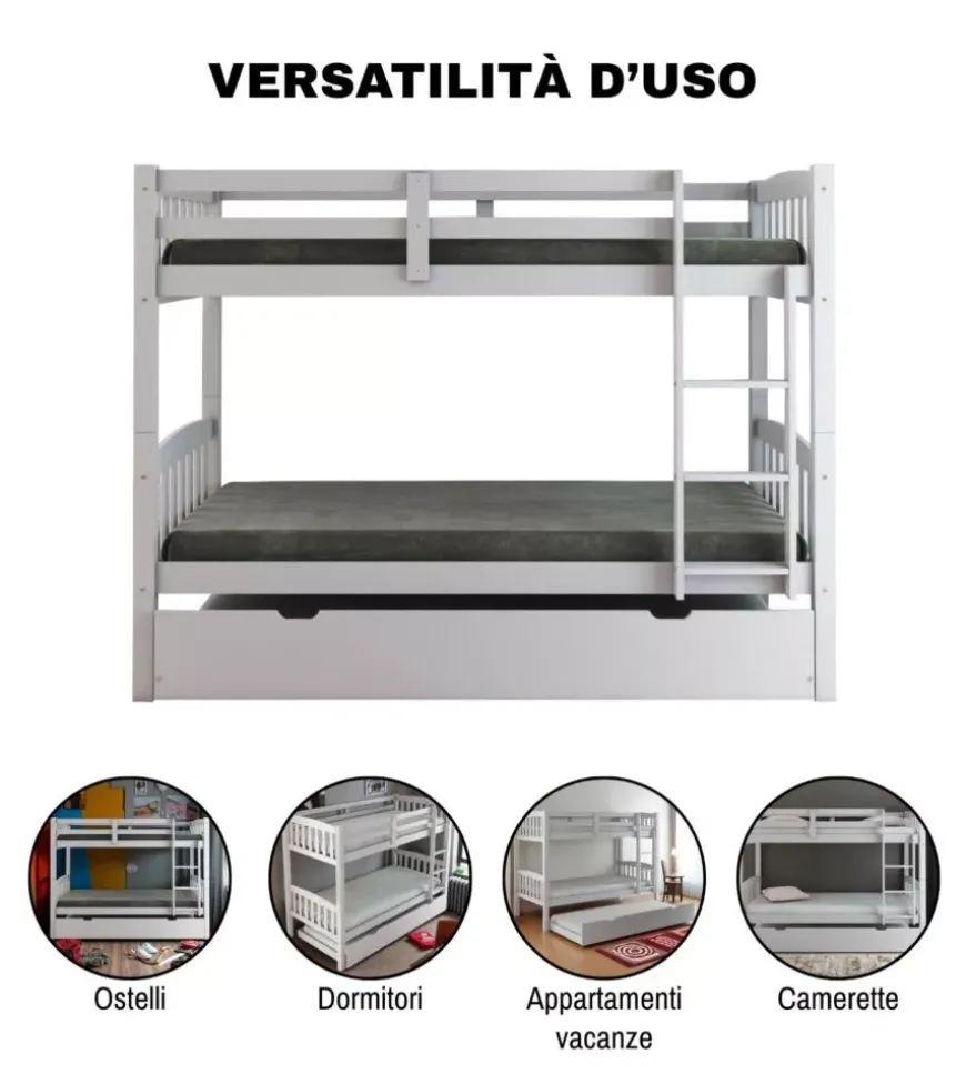 - Modello: letto a castello “Tolosa” con 3 posti letto