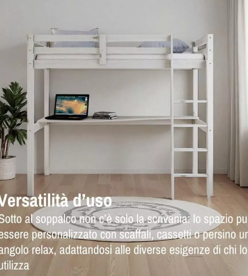 - Spazio sotto il letto: altezza utile 139 cm