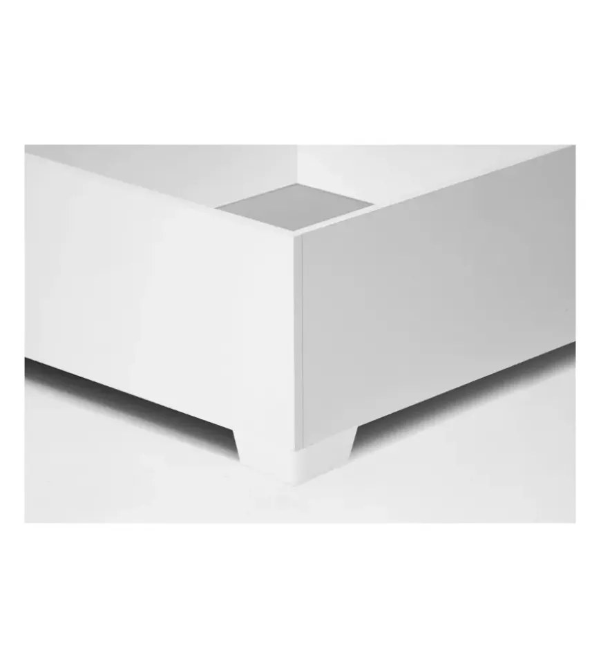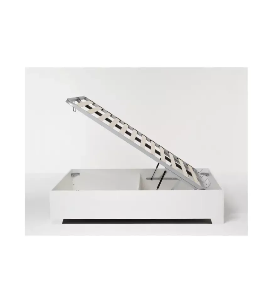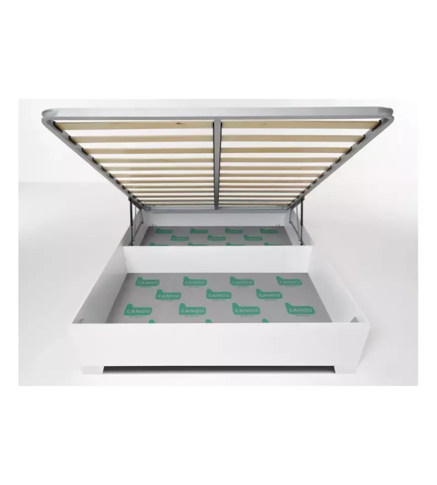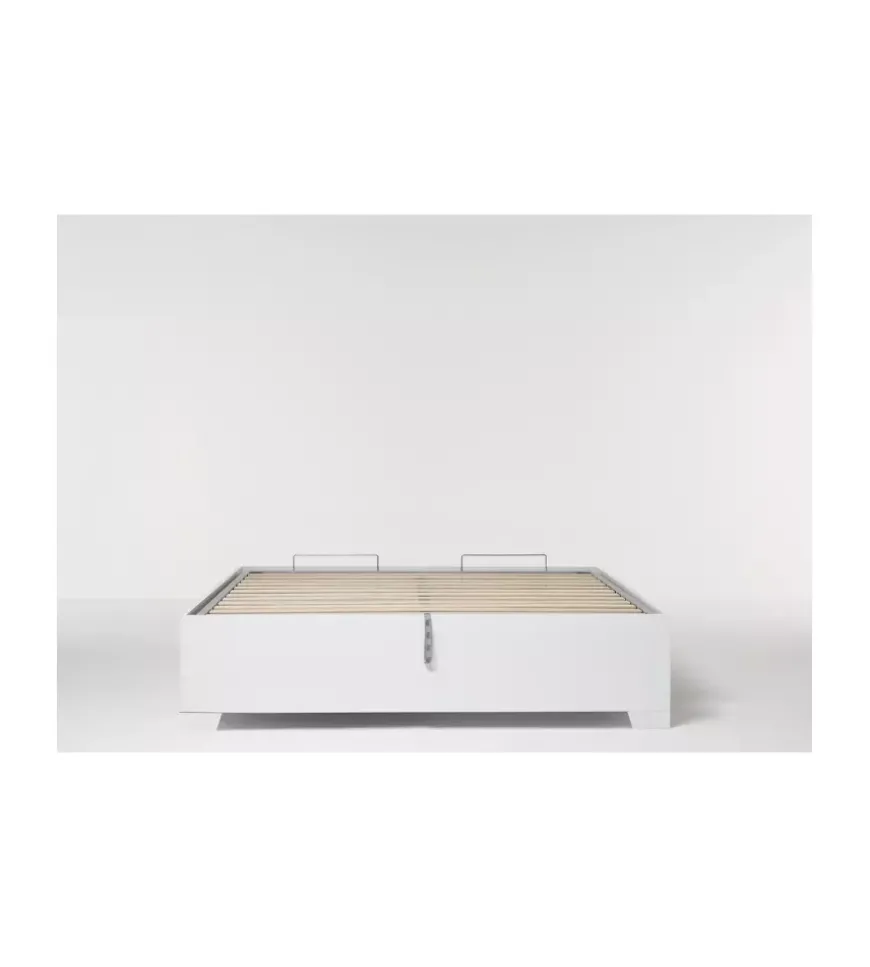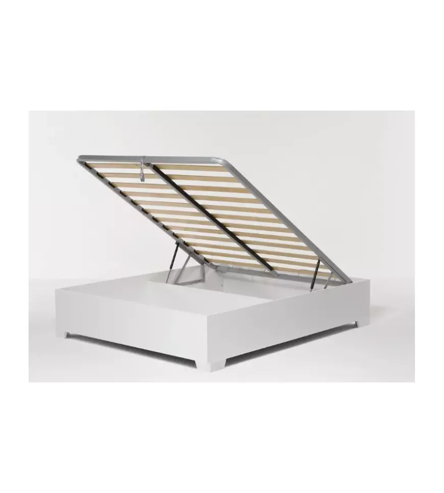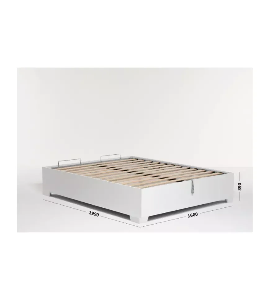 Il letto matrimoniale “Bed Box” rifinito in legno bianco con cassettone contenitore, rete rialzabile e piedi alzanti, è la scelta ideale per chi cerca una struttura elegante, funzionale e pratica. La rete ortopedica a 12 doghe, inclusa nella struttura, si solleva facilmente grazie alle molle a gas, permettendo di utilizzare al meglio l’ampio vano contenitore da 840 litri per riporre tutto ciò che serve. I piedi alzanti sollevano la base da terra, rendendo semplice la pulizia del pavimento sottostante. Il letto viene spedito in kit da montare e il montaggio è rapido e intuitivo, richiedendo meno di un’ora. Il fondo è incluso, mentre il materasso da 160×190 cm non è compreso.