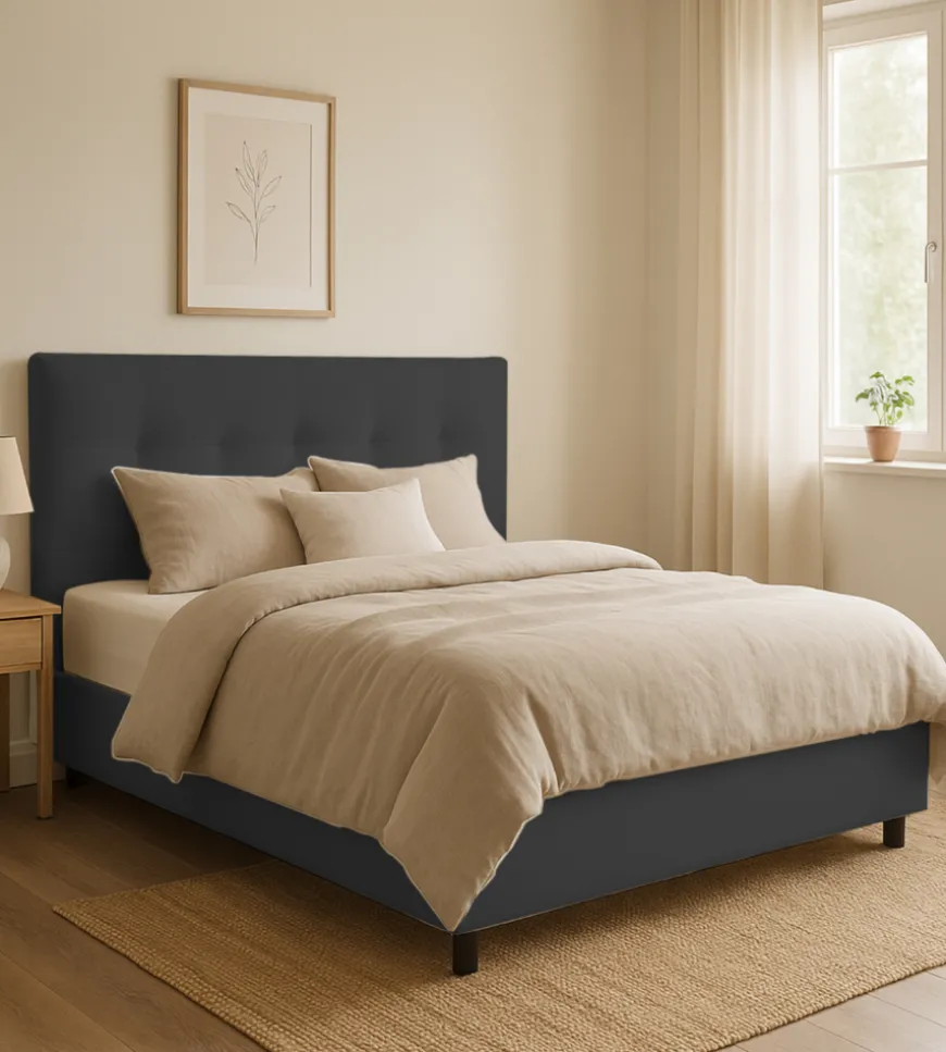 - Letto matrimoniale “Easy” rivestito in ecopelle nero