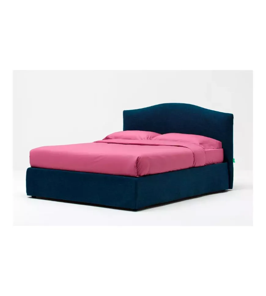 - Letto matrimoniale “Hill” rivestito in tessuto color blu