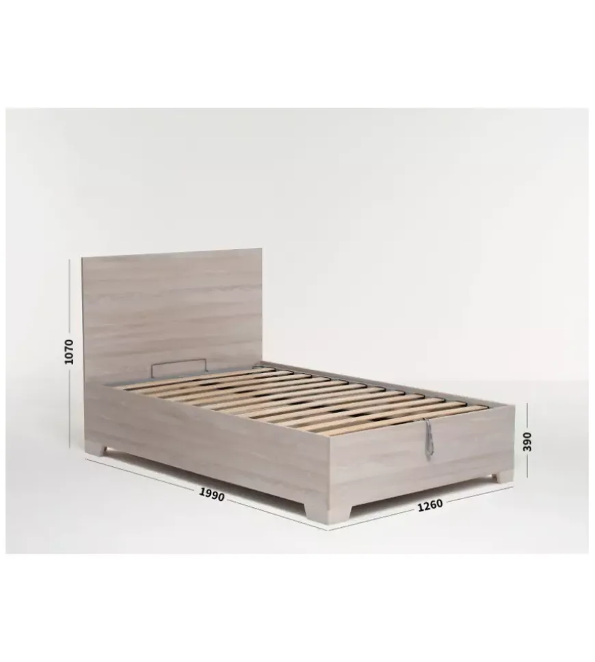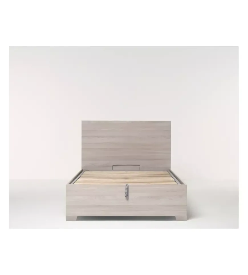 Letto piazza e mezza contenitore con piedini “hi box” olmo naturale 120×190 cm