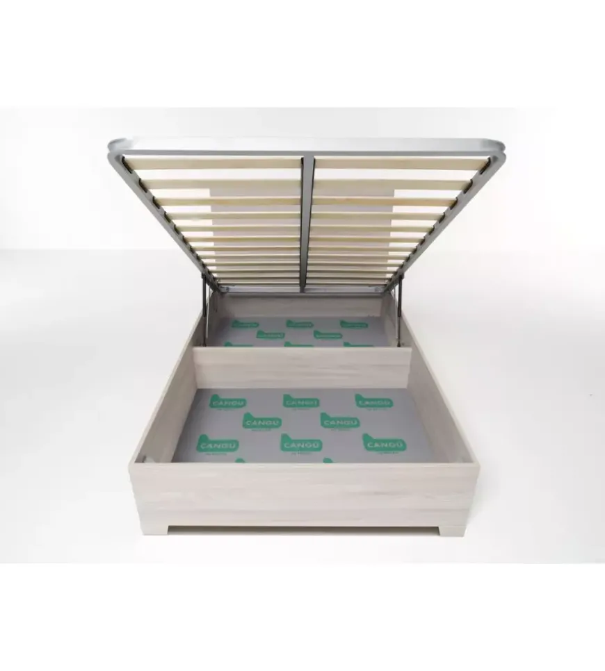 Il letto una piazza e mezza “Hi Box” con piedini è la soluzione perfetta per chi desidera unire estetica e funzionalità. Caratterizzato da un design pulito ed elegante, è dotato di rete ortopedica a 12 doghe (inclusa) che si solleva facilmente grazie a un sistema a molle a gas, anche in presenza di materassi pesanti. Il capiente vano contenitore da 635 litri permette di ottimizzare lo spazio in modo intelligente, mentre i piedini sollevano la struttura da terra, facilitando la pulizia del pavimento. Facile da montare in meno di un’ora, viene fornito in kit con fondo incluso.