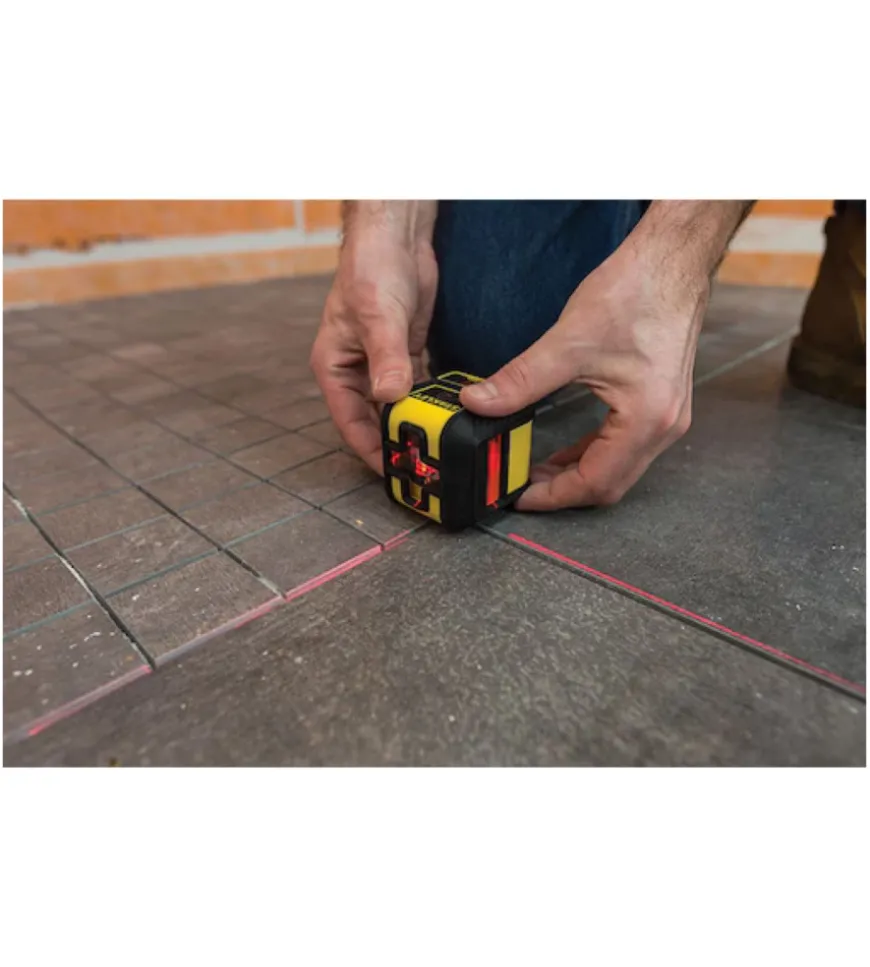 - Livella laser autolivellante – traccia una croce con angoli a 90° ed una seconda linea a 90°