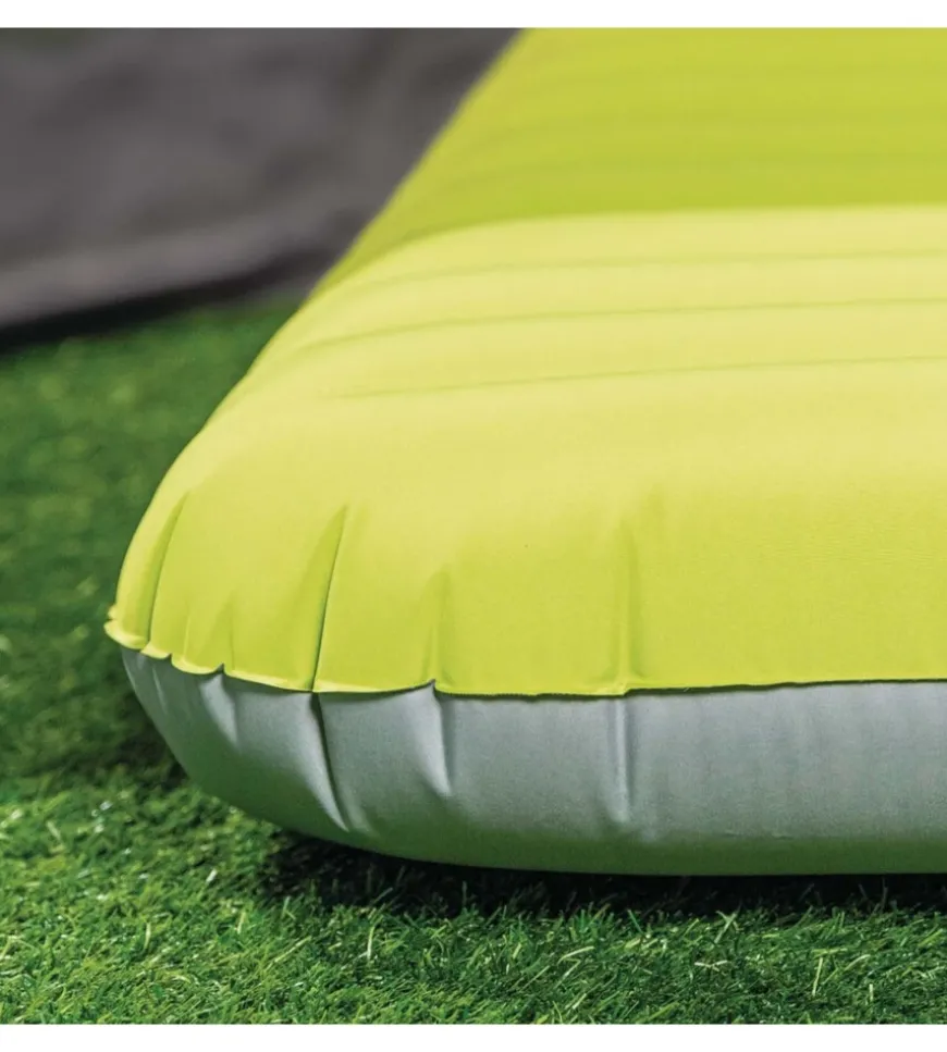 Realizzato in TPU, un materiale sostenibile, privo di ftalati, BPA e cloro, e con una costruzione a doppio strato laminato resistente alle forature, questo materasso è progettato per resistere agli ambienti outdoor più difficili. La superficie floccata in verde offre una sensazione di morbidezza, mentre la tecnologia brevettata Fiber-Tech utilizza migliaia di fili di fibra disposti in fasce orizzontali per un supporto ottimale durante il riposo.
