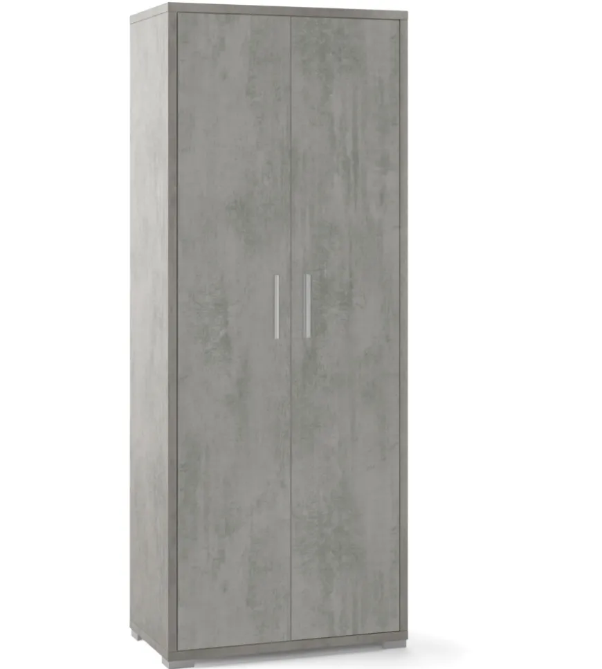 Armadio 2 ante bianco e cemento 90x45x195 cm