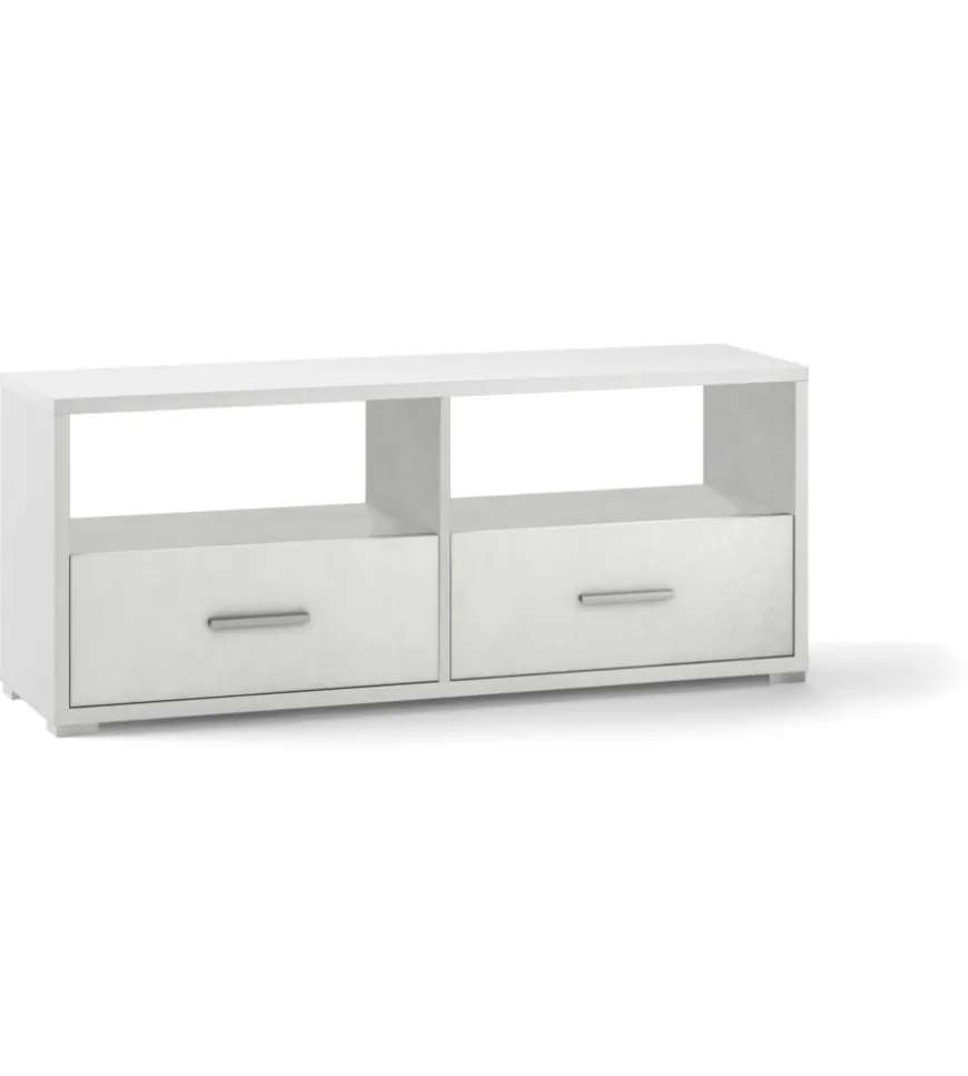 Mobile 2 ante 4 cassetti bianco e cemento, 174x84x41 cm