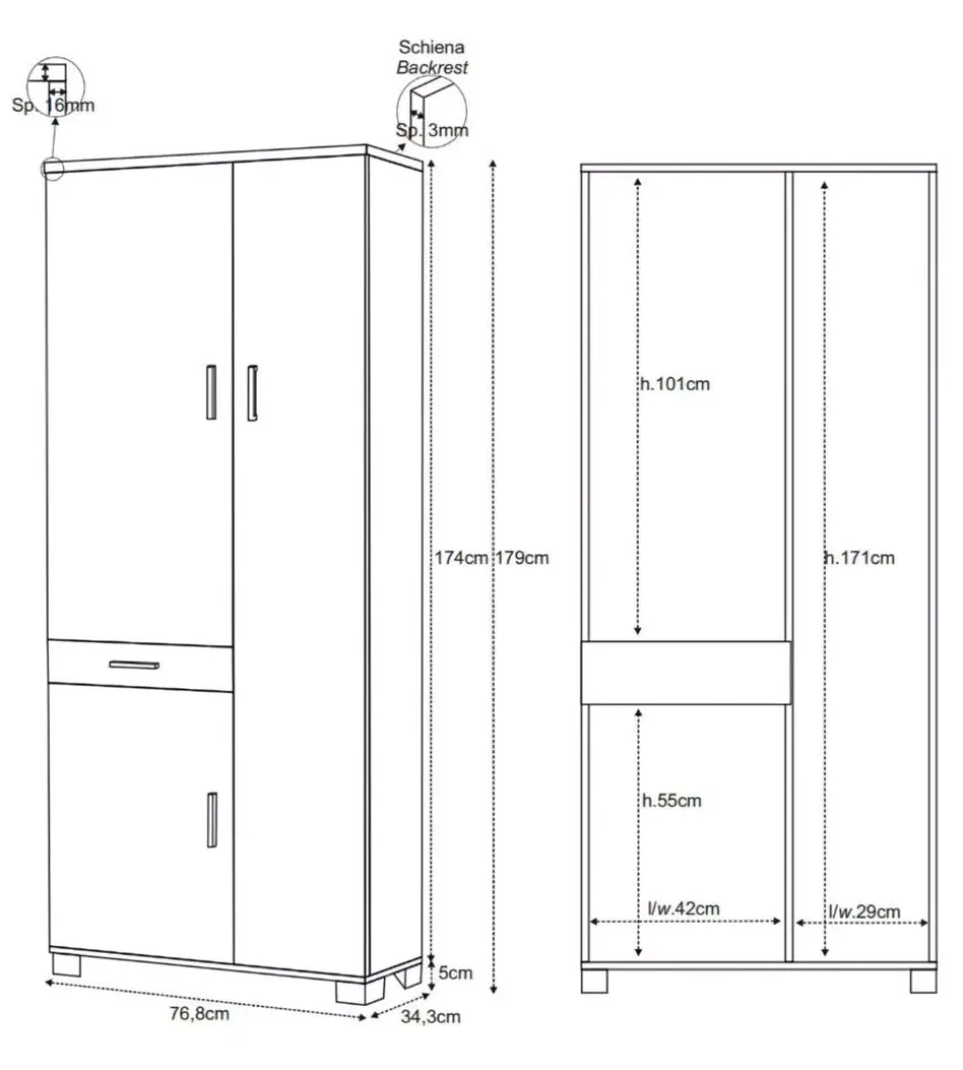 Armadio multifunzione pratico e capiente grazie ai suoi 6 ripiani e al cassetto aggiuntivo che ti permetteranno di riporvi tutto il materiale che desideri.