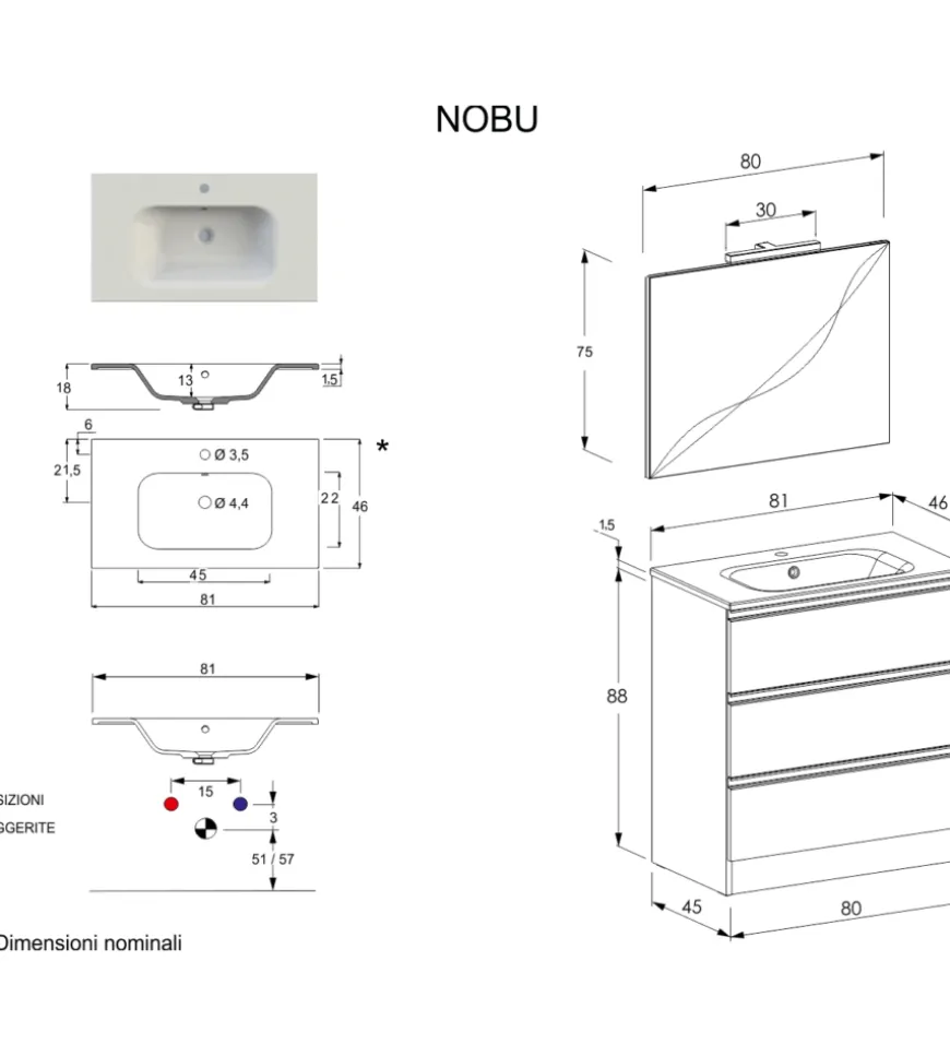 Questo mobile bagno รจ disponibile anche in altre colorazioni.