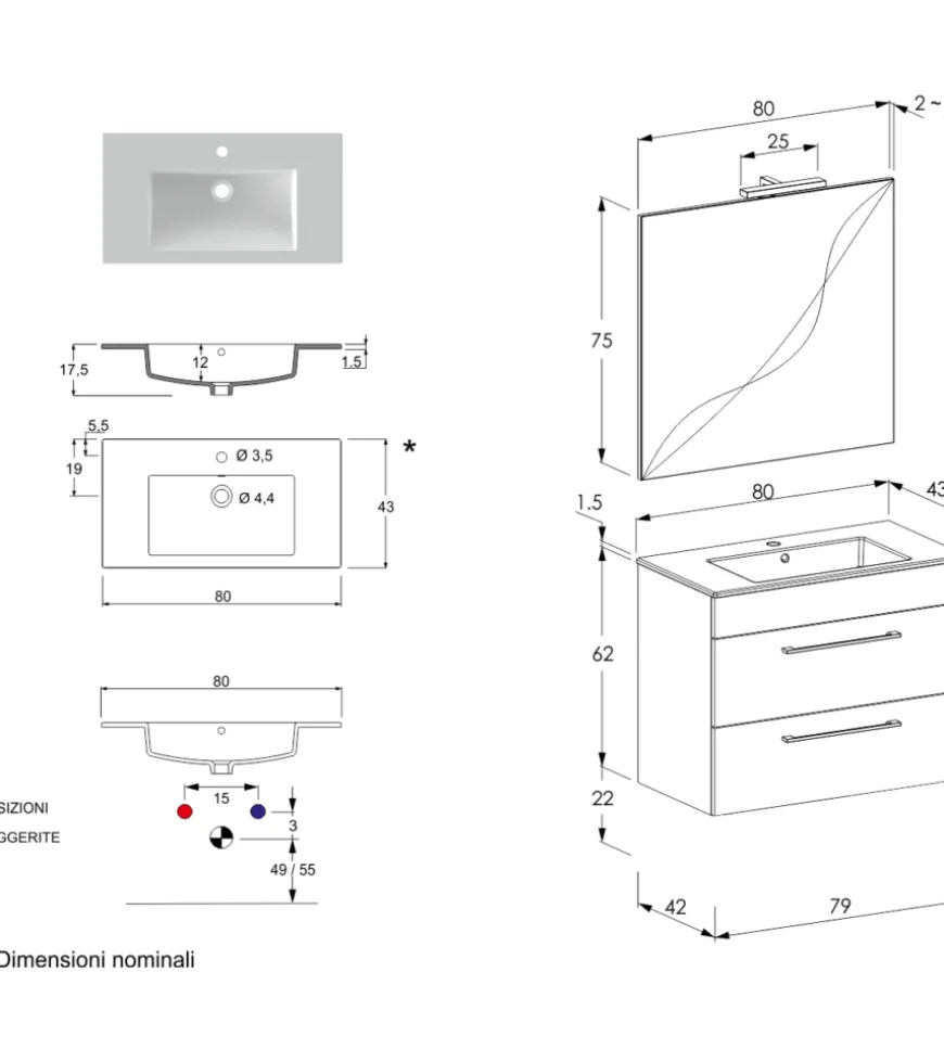 Misure specchiera (L x H x P)80x75x2,5 cm