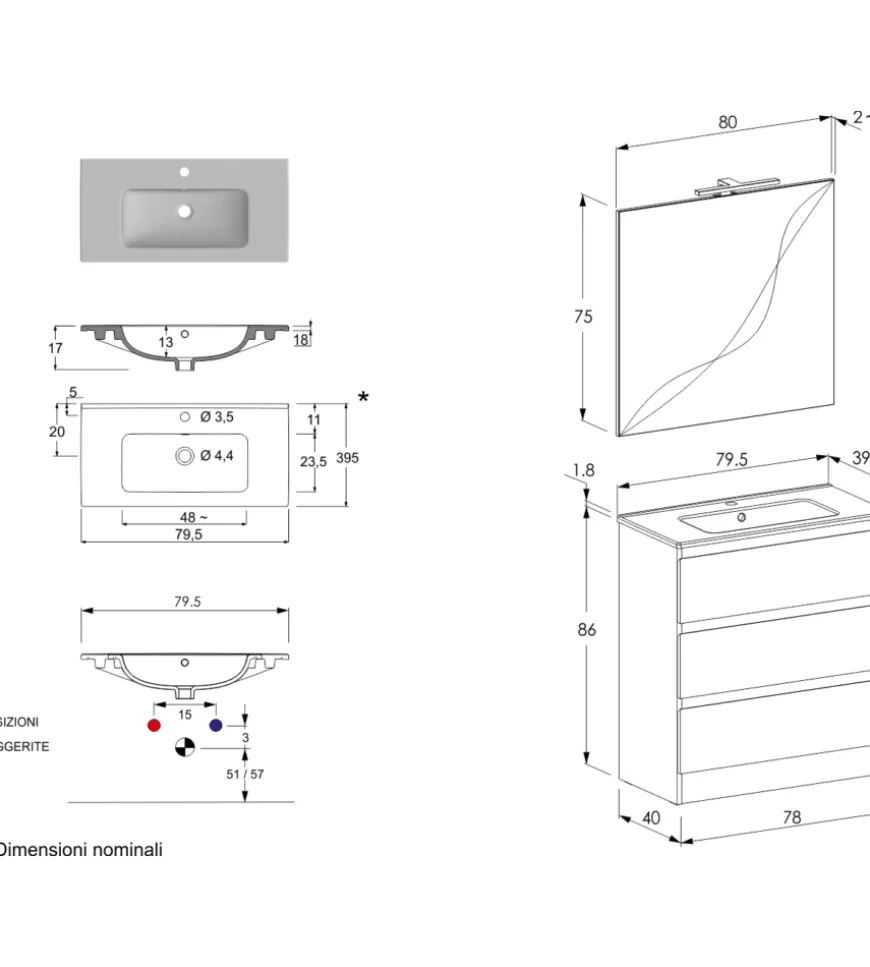 - Lavabo 79,5×39,5×1,8 cm