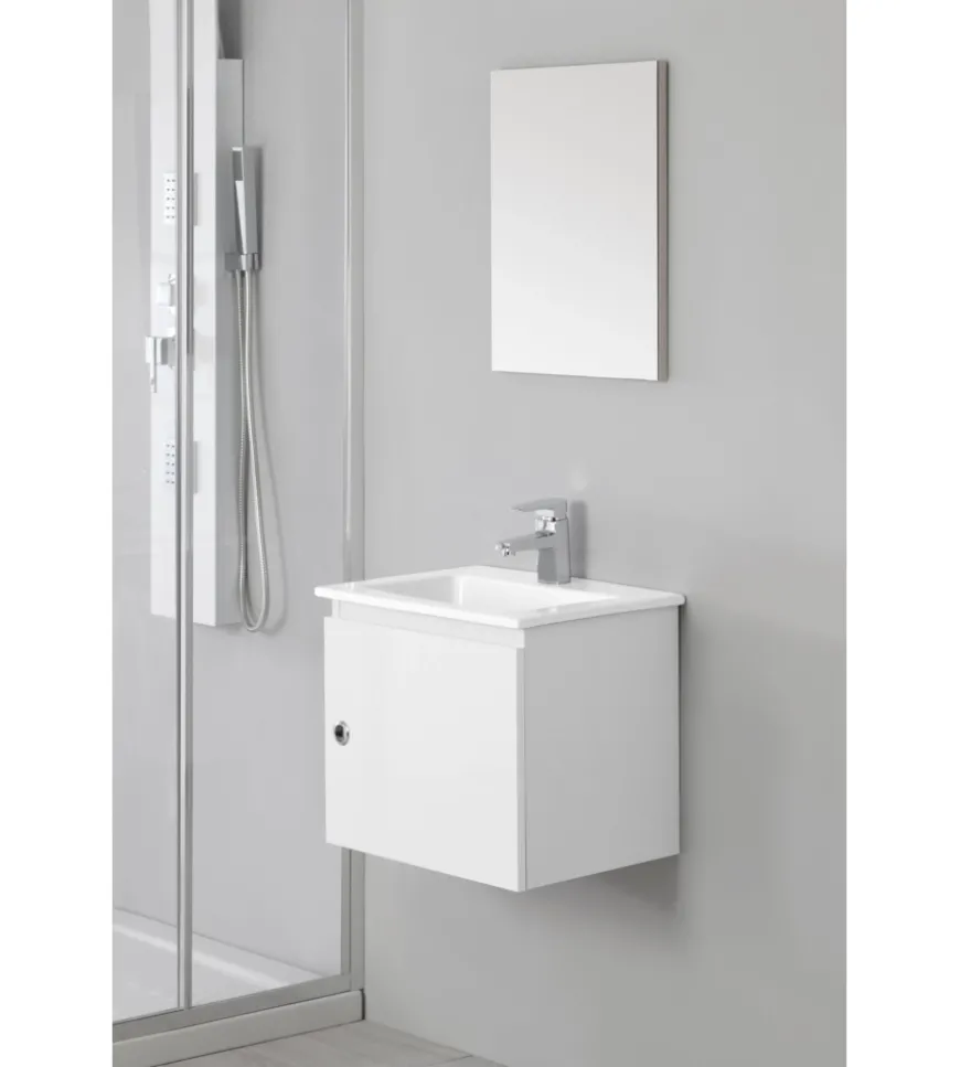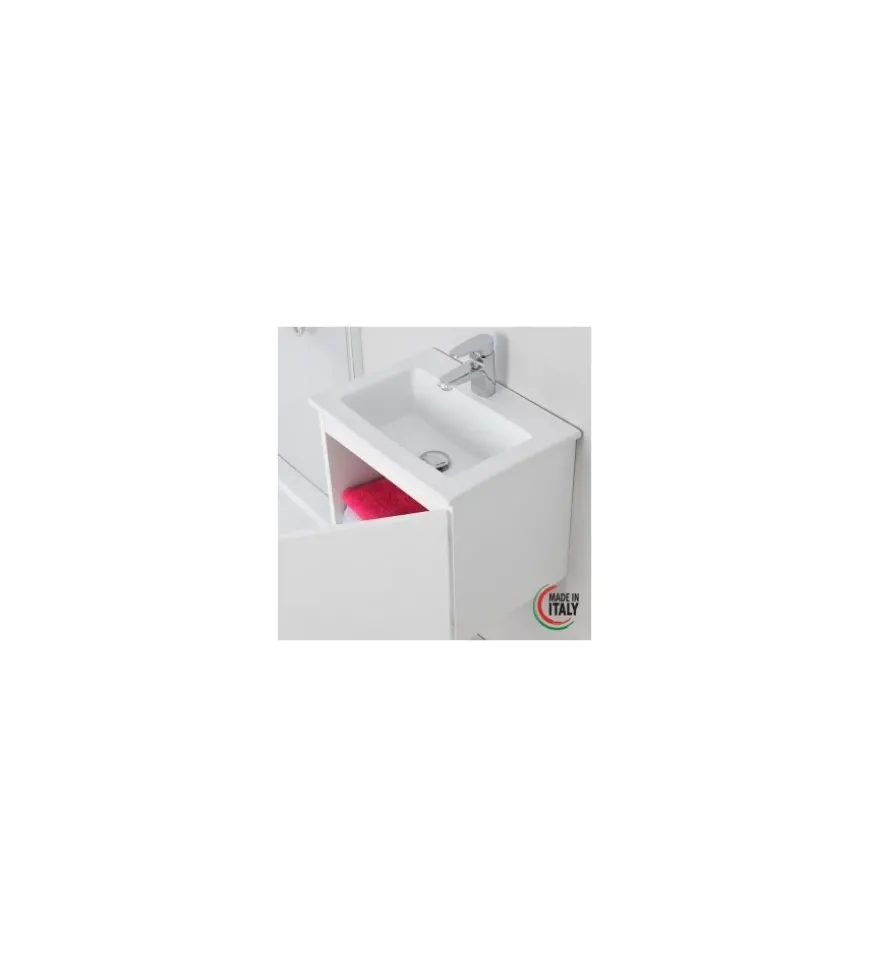 Una composizione bagno salvaspazio, perfetta per essere posizionata in bagni piccoli che necessitano di essere particolarmente ottimizzati.