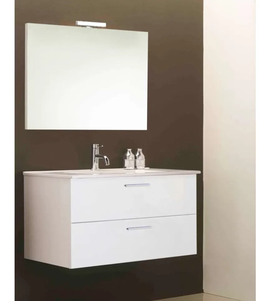 Un mobile moderno ed elegante, discreta, si presta a bagni grandi e piccoli impreziosendo l’ambiente grazie alla rifinitura bianco lucido e le maniglie rifinite cromate.