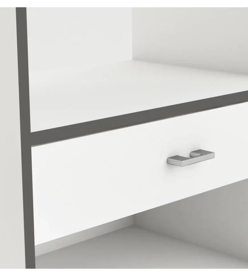 Scrivania in mdf effetto quercia con tre cassetti bianchi, 72x48x120 cm