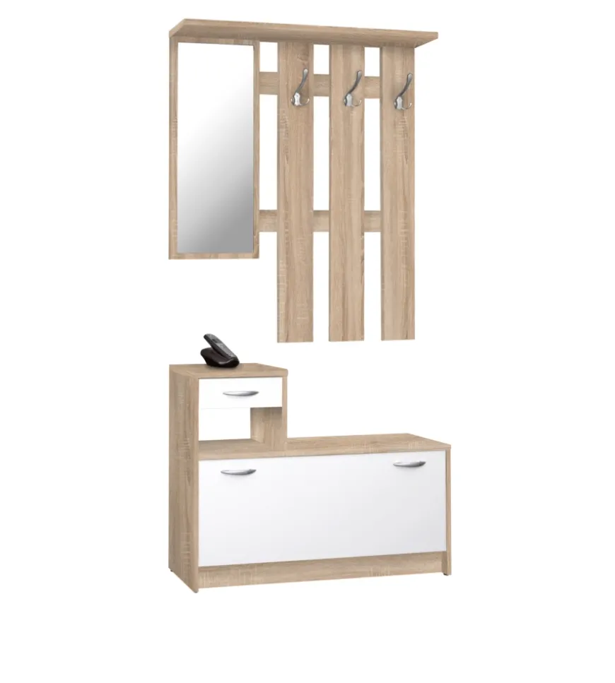 Be the first to review “Mobile da ingresso con specchio e appendiabiti bianco e quercia, 100x25x180 cm” Annulla risposta