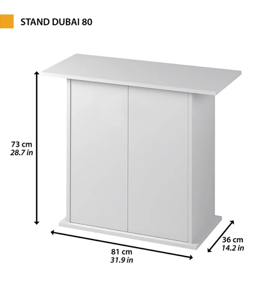 I mobili in legno Hydor sono il supporto ideale per acquari. Dal design lineare ed elegante, si adattano perfettamente ad ogni ambiente. Il piano d’appoggio è progettato per resistere all’acqua ed a possibili versamenti o schizzi. Le ante sono dotate di un sistema Push-Pull che ne facilita l’apertura e permette di mantenere un design pulito. I vani e ripiani sono utili per riporre gli accessori dell’acquario. Sono inoltre dotati di piedini regolabili, per maggior stabilità e sicurezza. La linea Stand Dubai è disponibile sia in colore nero che bianco. Il modello Stand Dubai 80 si adatta perfettamente con gli acquari Dubai 80.